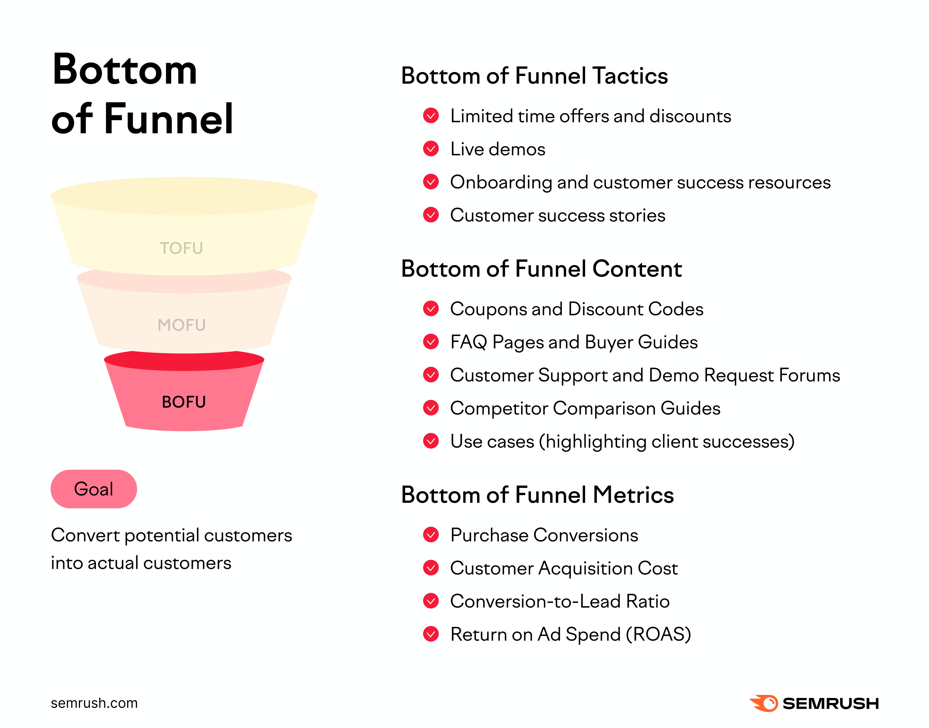 BoFU (Bottom of the Funnel) represents users who are at the decision stage and ready to purchase or complete a conversion.