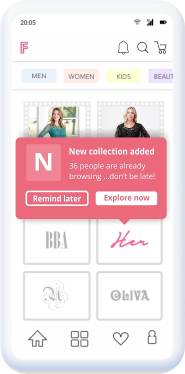 Nudges are all about the context. To create context-specific journeys, nudges must be shown at the right moment in the user journey. Every user follows a certain path on the app – for instance, in an ecommerce app, the user flow looks like – Sign-in → browse products → add to cart → check out. Place nudges at the most relevant points within the user journey flow where users are most likely to interact with the nudge and take action.